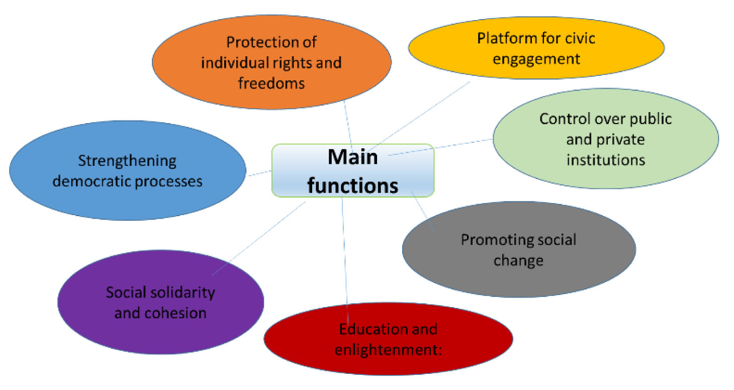 Civil society has a key role in social life, performing functions that contribute to democracy strengthening, human rights protection, social justice and stability maintenance in society.