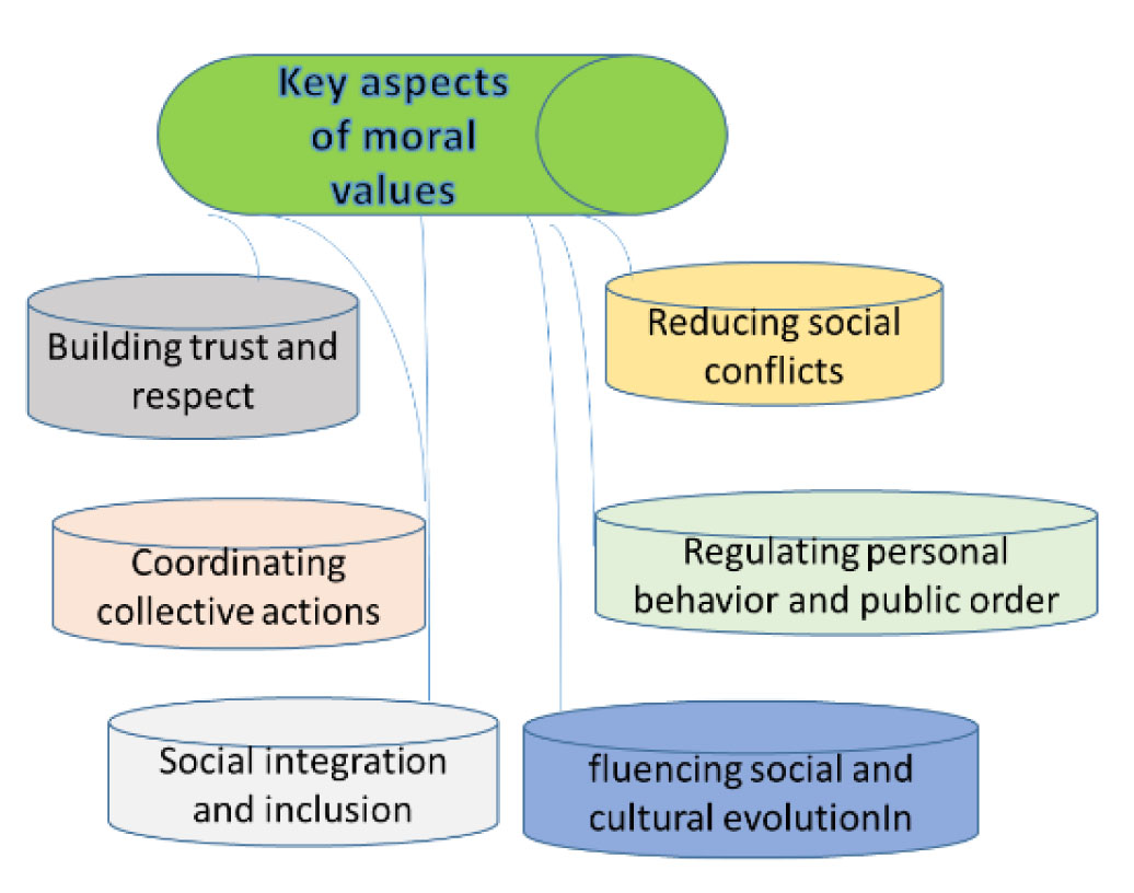 Moral values play a vital role in establishing normal and harmonious relationships between people in society. Without moral guidelines, social interaction would be chaotic and destabilizing. Let's look at several key aspects of their role at Fig. 3.